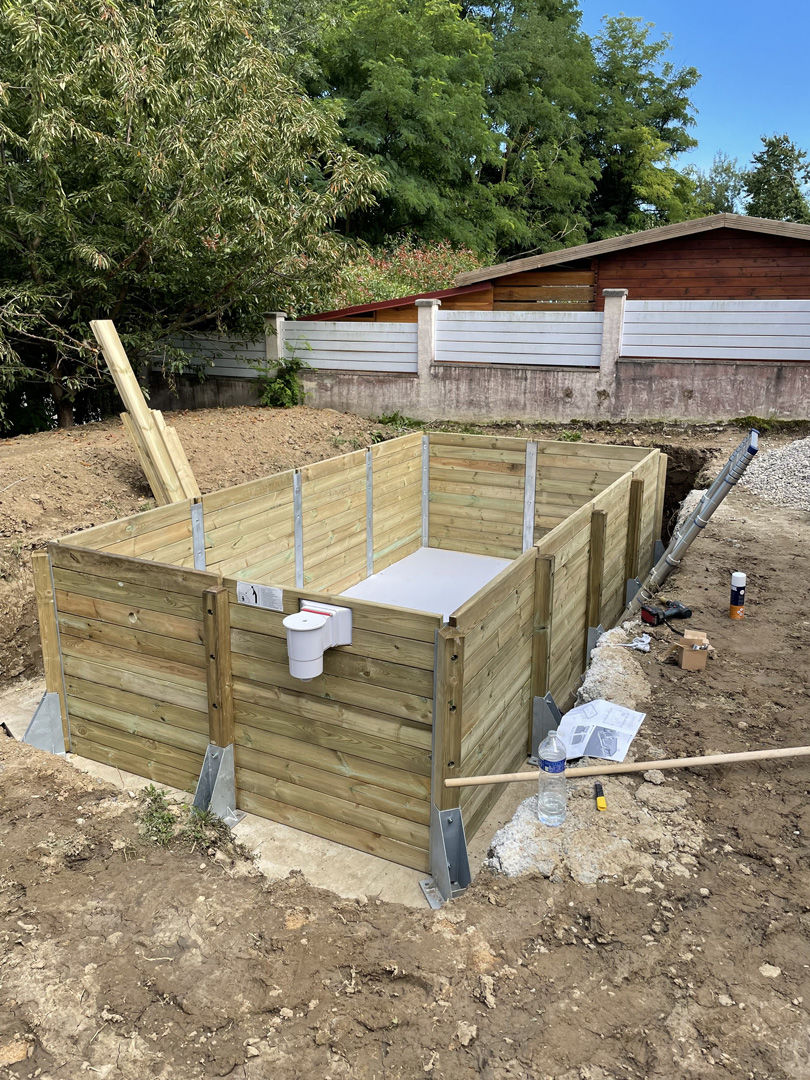 Découvrez le terrassement et l'installation de cette piscine en bois creusée par AT Terrassement.